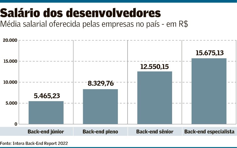 Salário para esse tipo de desenvolvedor varia de R$ 5,4 mil a mais de R$ 15 mil, indica levantamento Um