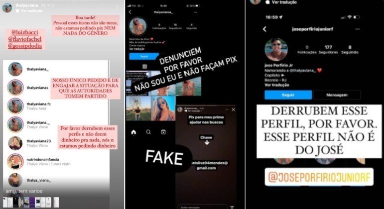 Thalya Ares expôs contas que se passam por ela pedindo dinheiro para supostamente ajudar nas buscas por José Porfírio
