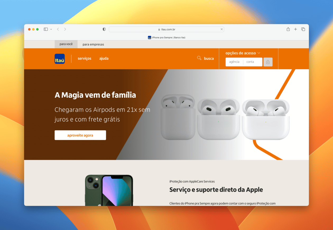 Programa iPhone pra Sempre do Itaú agora parcela AirPods em 21x